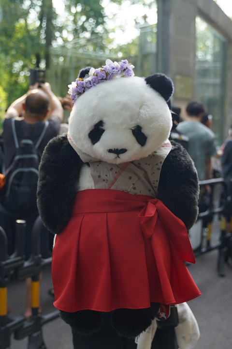 12日、日本のファンが持ってきたシャンシャンのぬいぐるみ。(成都=新華社配信)