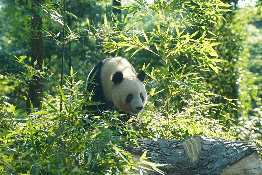 12日、中国ジャイアントパンダ保護研究センター雅安碧峰峡基地で歩くシャンシャン。(成都=新華社配信)