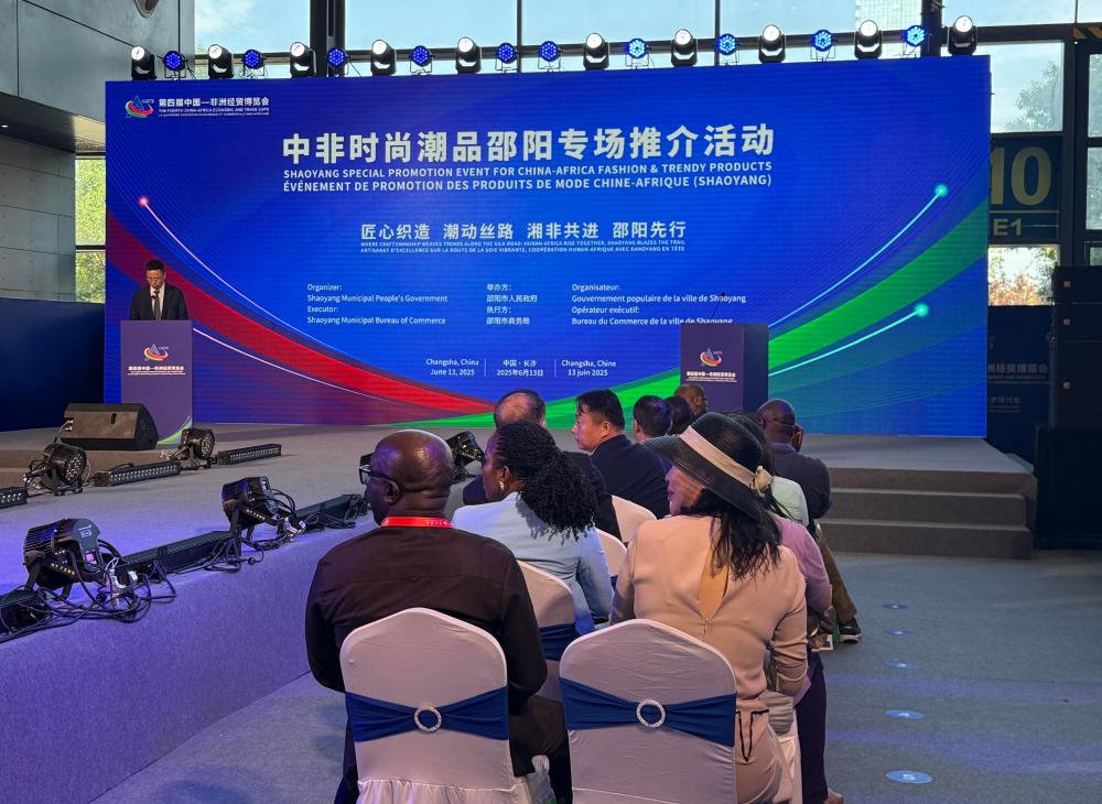 13日、長沙国際エキシビション・コンベンションセンターで開かれた邵陽市の中国アフリカファッション・トレンド製品特別プロモーション。(長沙=新華社記者/常博深)