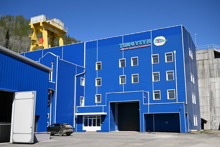 カザフスタン東カザフスタン州にあるトゥルグスン水力発電所の機械室外観。(5月8日撮影、アスタナ=新華社記者/李任滋)
