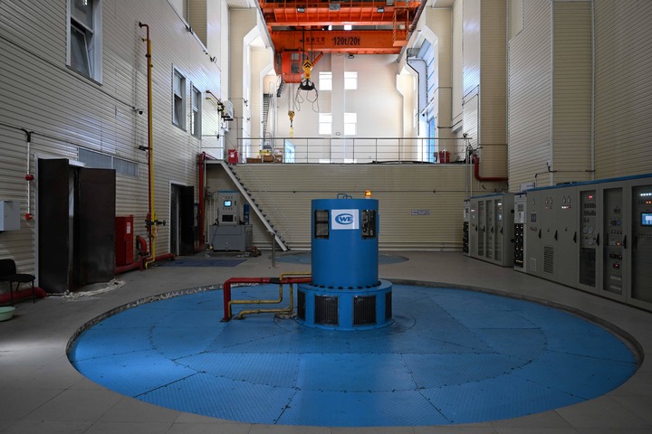 カザフスタン東カザフスタン州にあるトゥルグスン水力発電所の水力タービン。(5月8日撮影、アスタナ=新華社記者/李任滋)