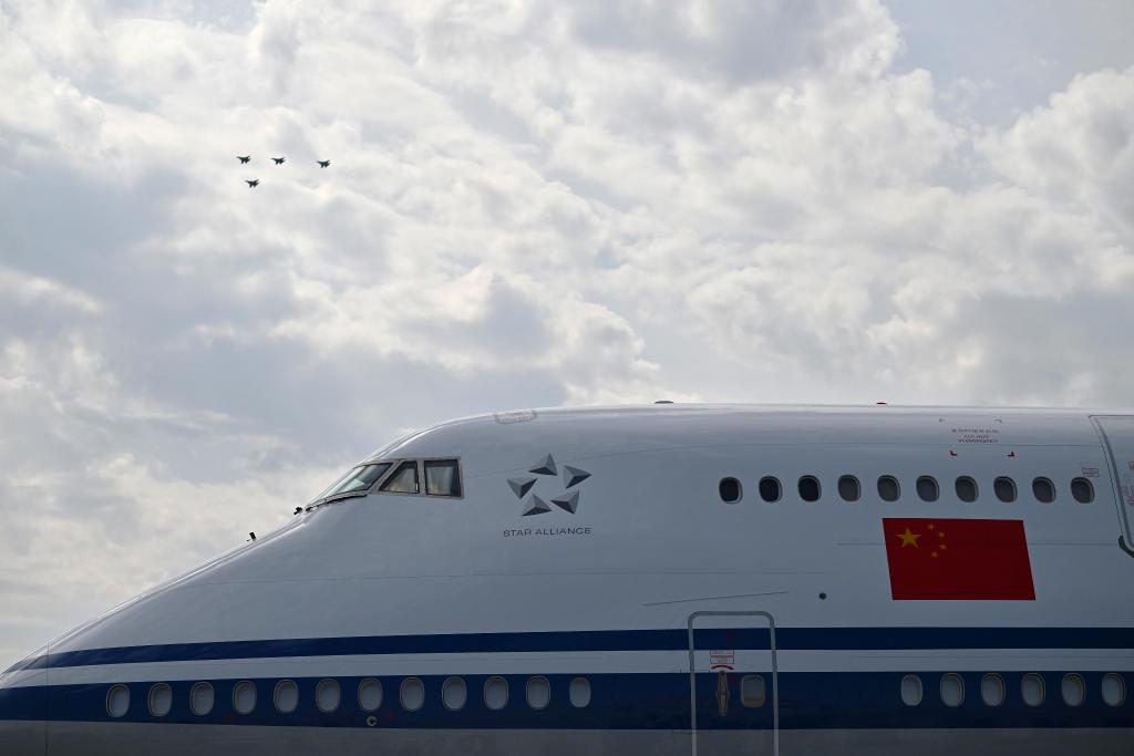 18日、習近平主席を乗せた特別機。(アスタナ=新華社記者/殷博古)