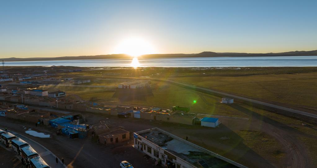 那曲市双湖県果根擦曲村の朝の風景。(2022年7月12日、ドローンから、那曲=新華社記者/晋美多吉)
