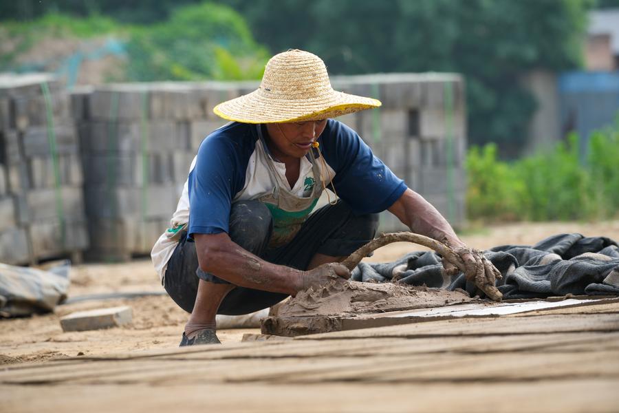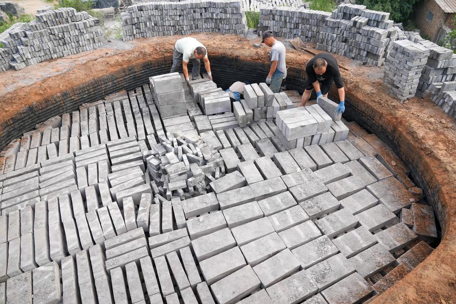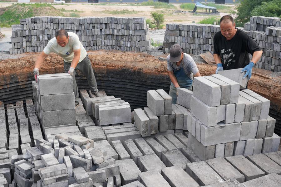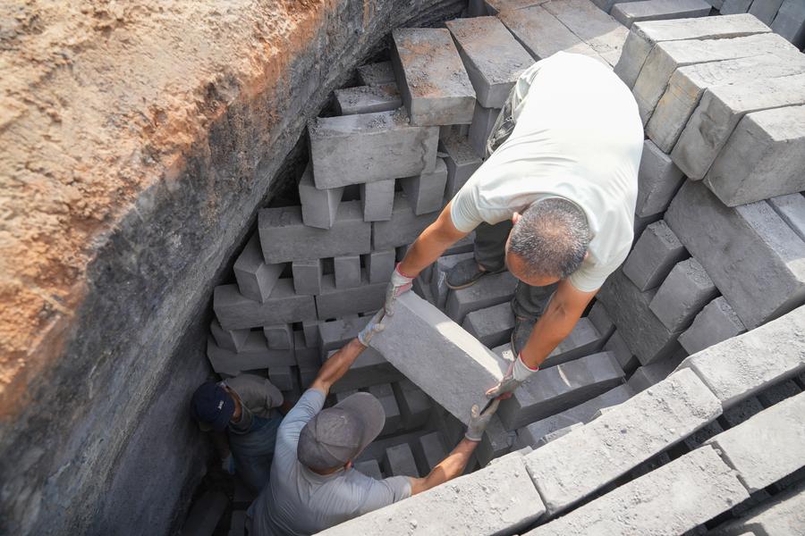 【新華社任丘6月18日】中国河北省任丘市出岸鎮にある伝統的なレンガ工房には、清代の道光年間(1821~1850年)に建てられたレンガ窯が残されている。1980年代に生産が再開され、伝統的な手仕事による青レンガづくりが今も続けられている。