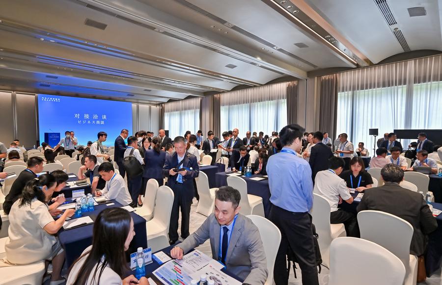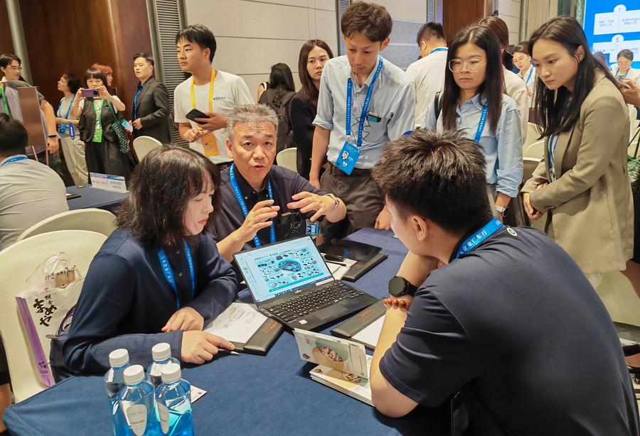 12日、「日系企業広東ビジネスツアー」で行われた低空経済・AI分野の商談会。(広州=新華社配信)