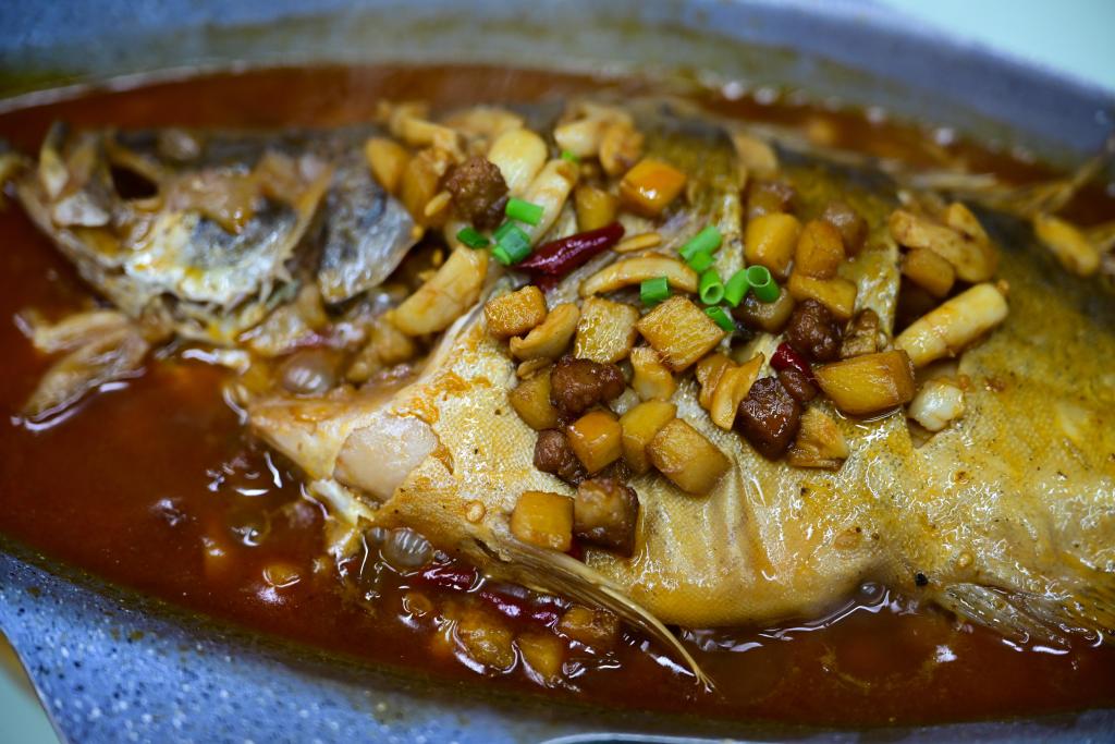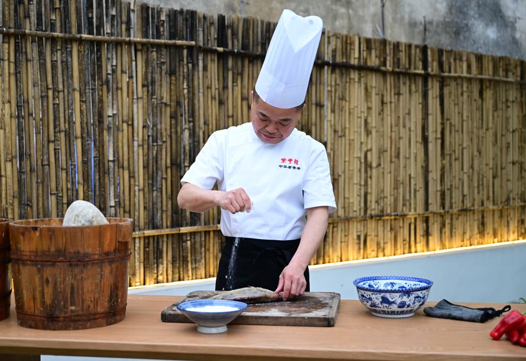 【新華社合肥6月18日】中国安徽省黄山市に起源を持つ安徽料理は「中国八大菜系(八大料理)」の一つに数えられる。その代表的な料理で淡水魚のケツギョを使った「臭鱖魚(塩漬けケツギョ)」作りは数百年の歴史を持つ。徽州(省南部黄山市一帯の古称)臭鱖魚の制作技術は2022年、同省の第6次省級無形文化遺産の代表的項目に登録された。