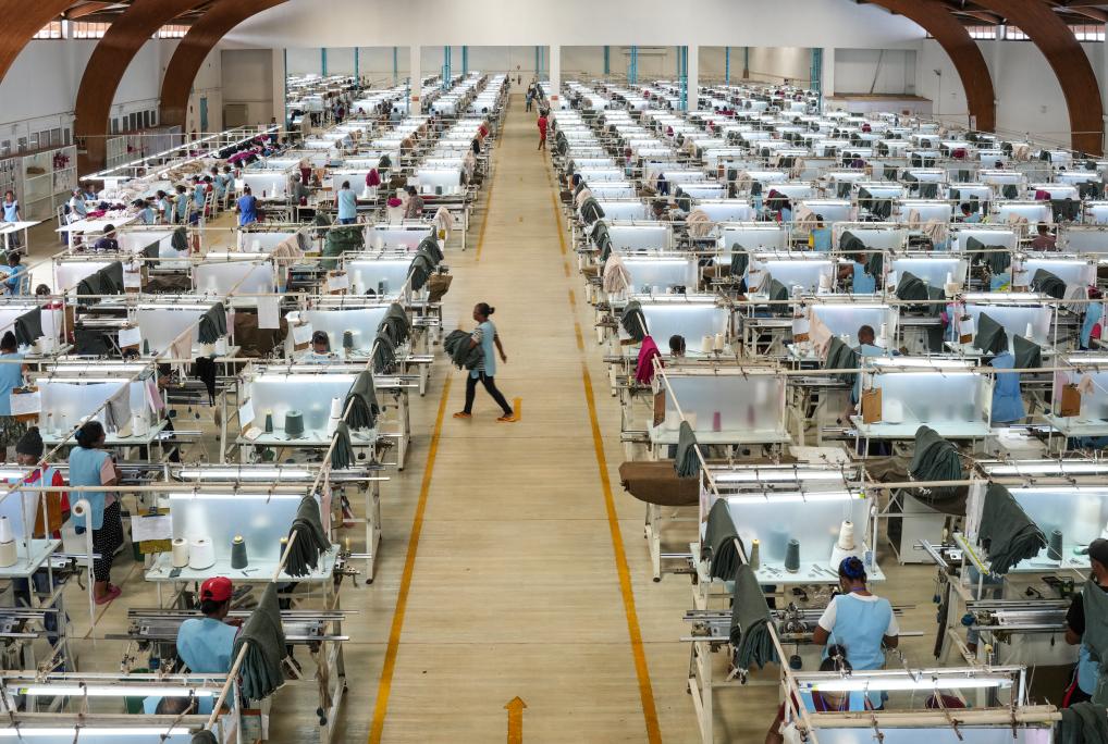 マダガスカル・アンタナナリボにある内蒙古鹿王羊絨の工場で働く現地従業員。(3月28日撮影、ナイロビ=新華社記者/李亜輝)