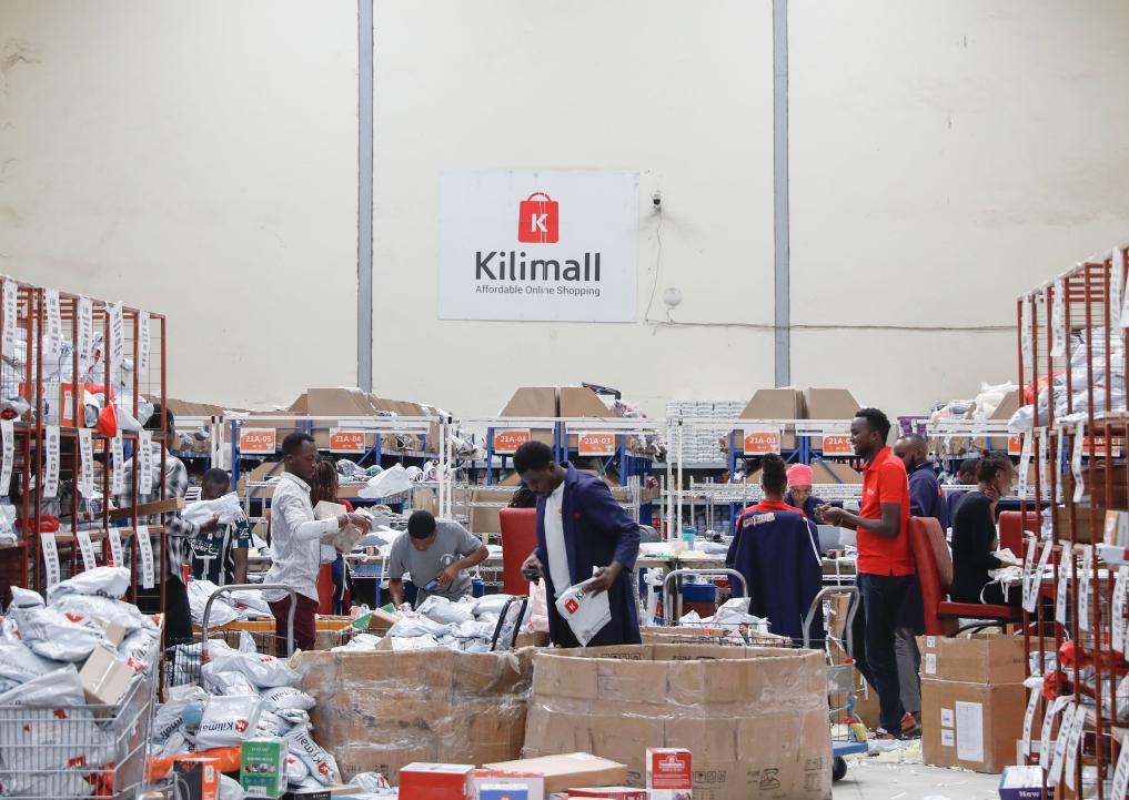 3日、ケニア・マロロンゴにあるECサイト「キリモール(Kilimall)」の物流拠点で、商品を仕分ける従業員。創業者は中国人。(ナイロビ=新華社記者/李亜輝)