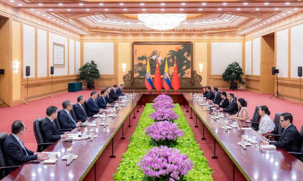 中国の習近平(しゅう・きんぺい)国家主席は27日午前、2025夏季ダボス会議出席のため訪中したエクアドルのノボア大統領と北京の人民大会堂で会見した。(北京=新華社記者/黄敬文)