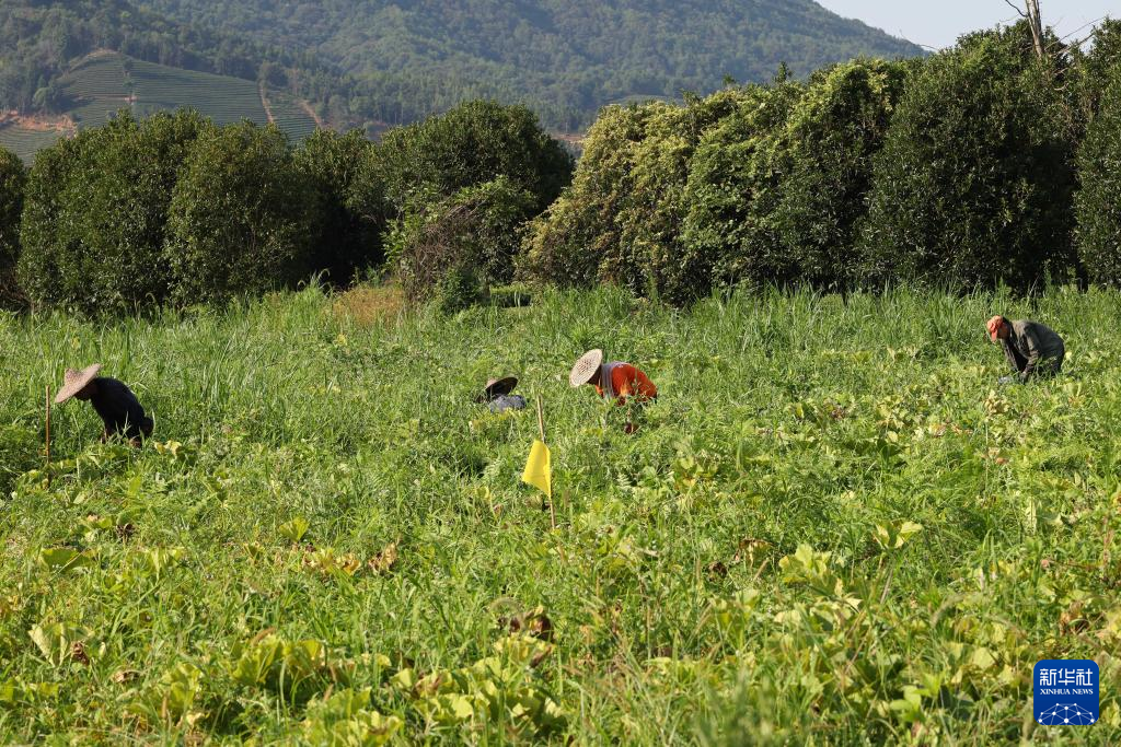 28日、貝貝カボチャを収穫する農業企業の従業員。(武夷山=新華社配信/邱汝泉)
