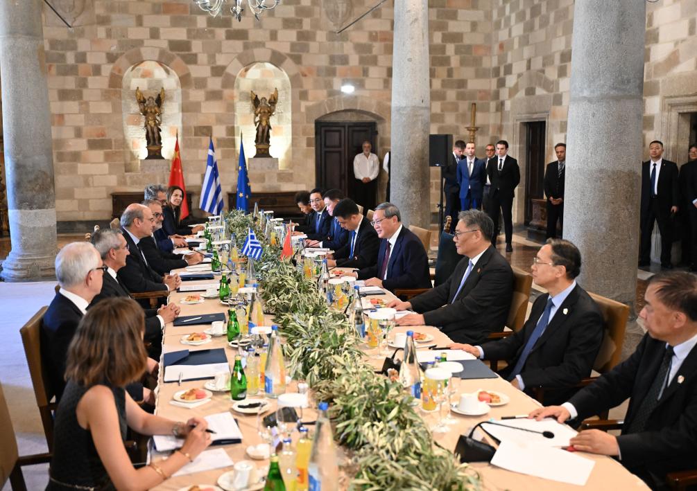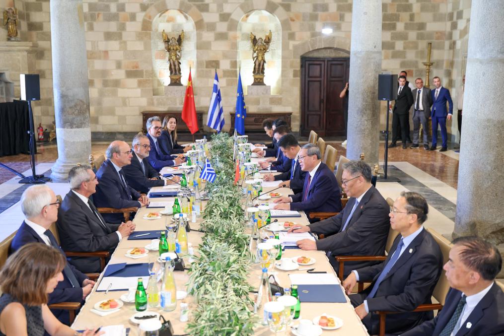 中国の李強(り・きょう)国務院総理は4日、ギリシャのロードス島で同国のハジダキス副首相と会見した。(北京=新華社記者/李響)