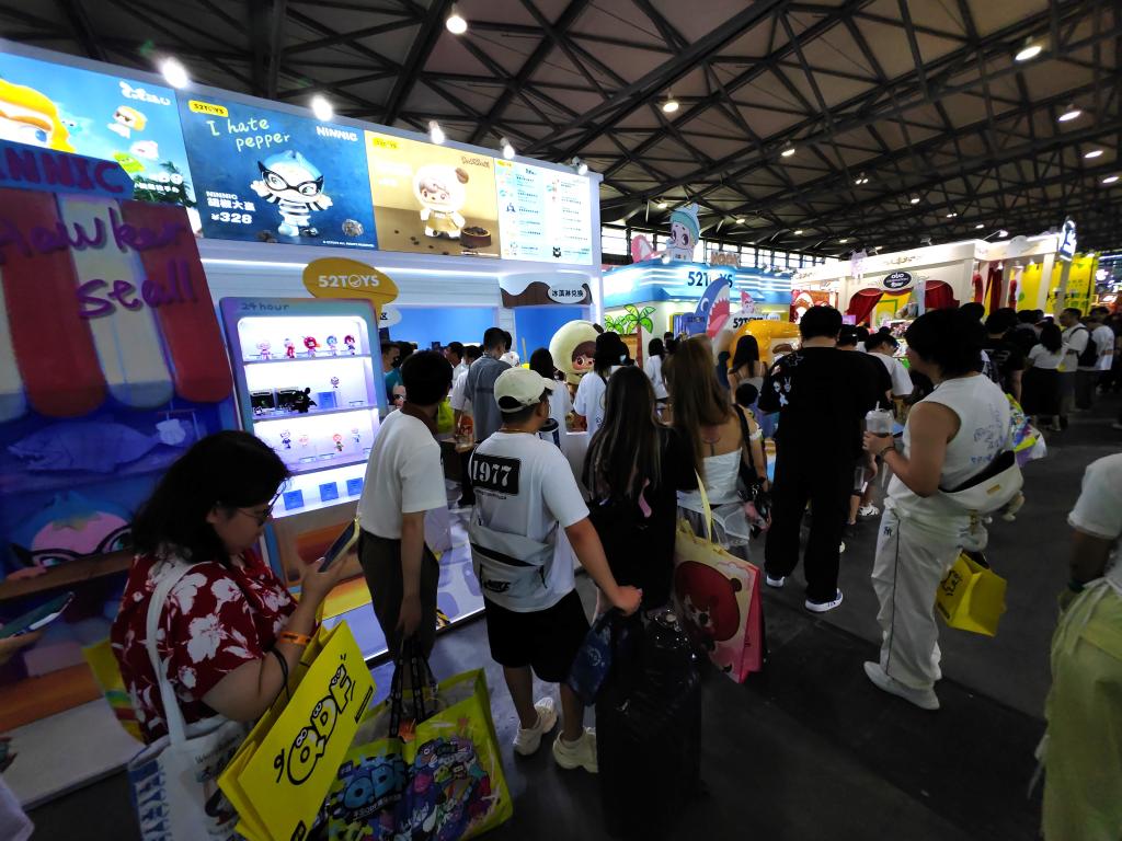 展示面積3万平方メートル以上に千を超えるブランドが一堂に会した。中国のアートトイブランドとオリジナルIP(知的財産)が出展の中心で、52TOYS、Finding Unicorn、TNTSPACE、Heyoneなど有名ブランドの人気IPを基にしたさまざまな商品が並んだ。限定商品の新作2千点余りが初めて公開され、来場者の注目を最も集めた。連日の猛暑にもかかわらず、全国から集まったアートトイ愛好家は意欲満々で、いくつものバッグやスーツケースを持参して買い物を楽しむ人の姿が見られた。