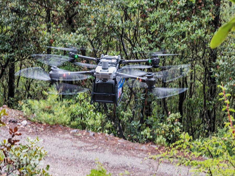 5日、マツタケを運搬するドローン。(シャングリラ=新華社記者/浦超)