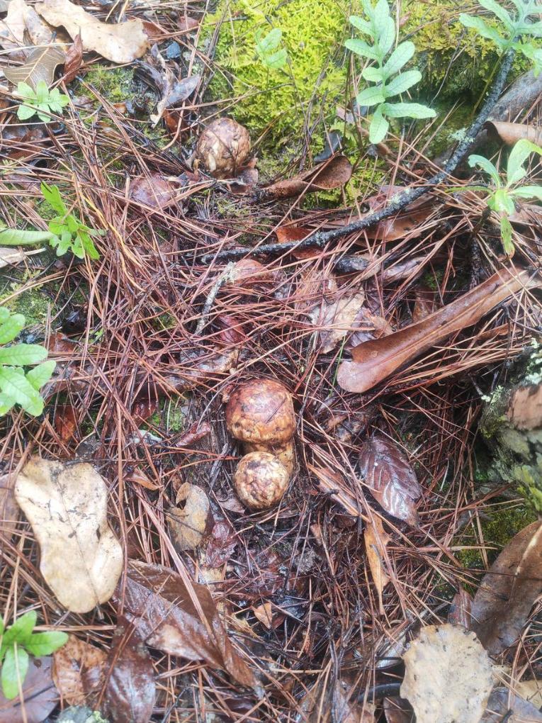 5日、雲南省デチェン・チベット族自治州シャングリラ市ニシ郷の山中に自生するマツタケ。(シャングリラ=新華社記者/浦超)