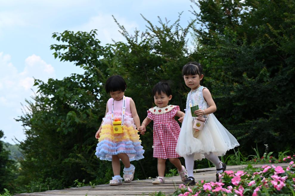 6日、花画小鎮で遊ぶ子どもたち。(貴陽=新華社配信/楊楹)