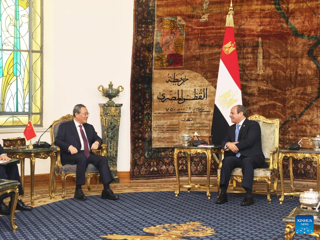 中国の李強(り・きょう)国務院総理は10日、エジプトのカイロで同国のシシ大統領と会談した。(カイロ=新華社記者/劉衛兵)