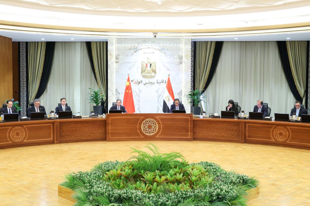 中国の李強(り・きょう)国務院総理は10日、エジプトのカイロで同国のマドブリ首相と会談した。(カイロ=新華社記者/丁海濤)