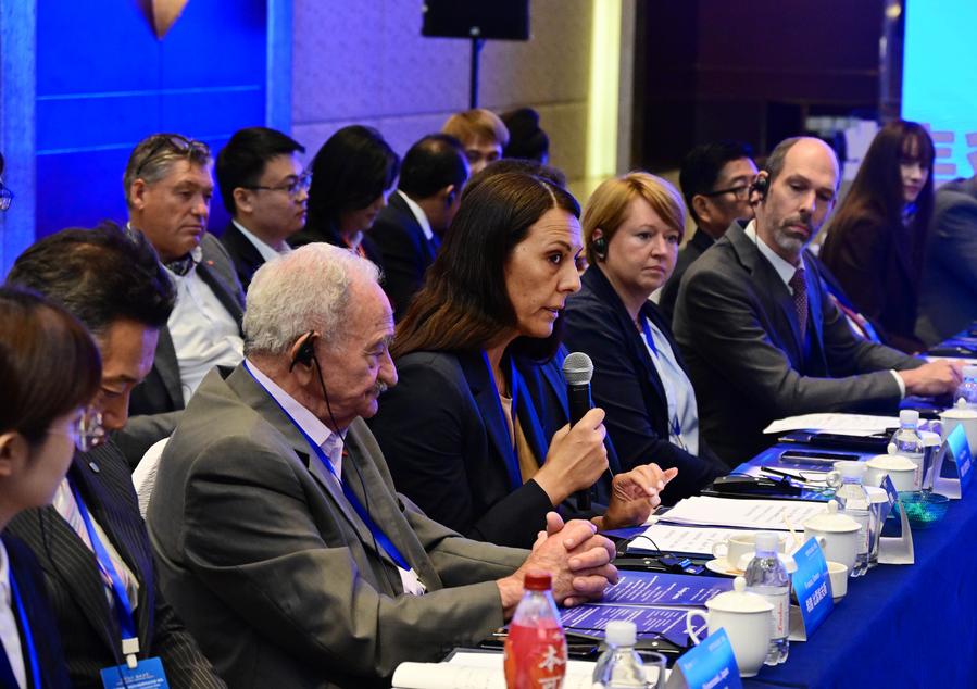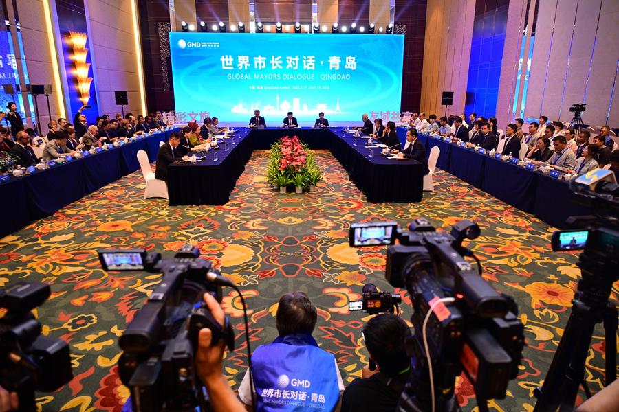 19日、世界市長対話の様子。(青島=新華社記者/李紫恒)