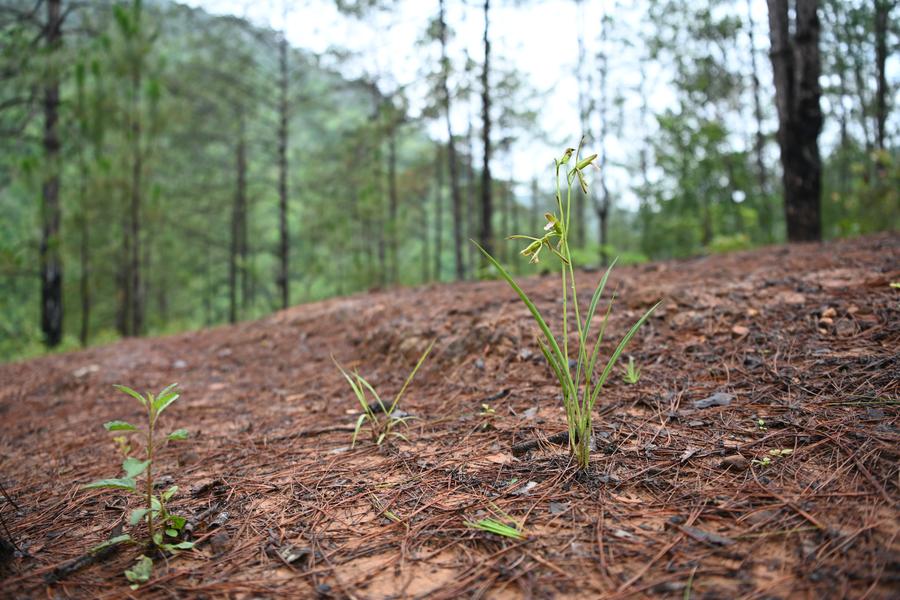 【新華社昆明7月23日】中国の研究者がこのほど、雲南省のラン科植物のモニタリングおよび国家重要野生植物の遺伝資源保存庫(ジーンバンク)プロジェクトの採集中に、同省玉渓市新平イ族ダイ族自治県を流れる元江の河谷で、かつて絶滅と評価された希少な絶滅危惧種の植物「単花美冠蘭」(学名:Eulophia monantha)の野生の群生を発見した。中国における野生の単花美冠蘭の確認は112年ぶりとなる。