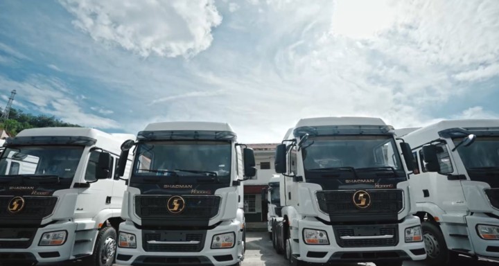 ミャンマーへ輸出される中国製大型トラック。(昆明=新華社配信/査巍)