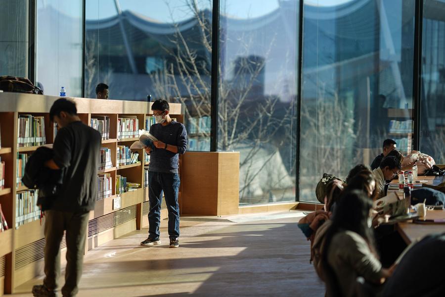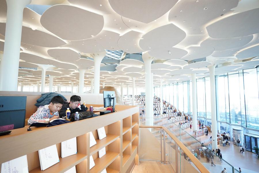 米タイム誌の「世界の素晴らしい場所100選」にも選ばれた北京都市図書館。(2024年1月14日撮影、北京=新華社記者/彭子洋)