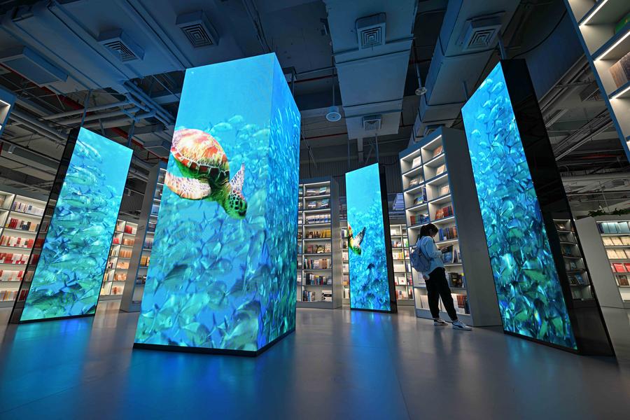 海の中のような海南省海口市にある新華書店海島書香店。(2024年11月13日撮影、海口=新華社記者/蒲暁旭)