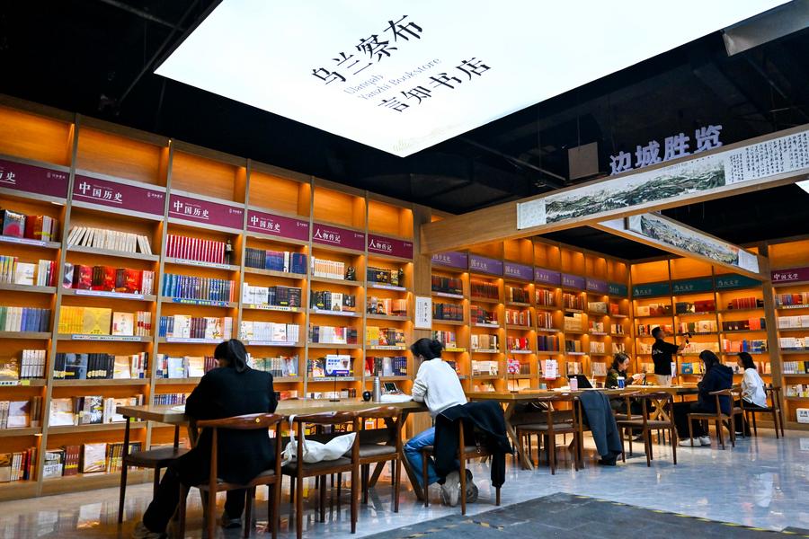 内モンゴル自治区ウランチャブ市の言知書店で自習する市民ら。(4月23日撮影、ウランチャブ=新華社記者/李志鵬)