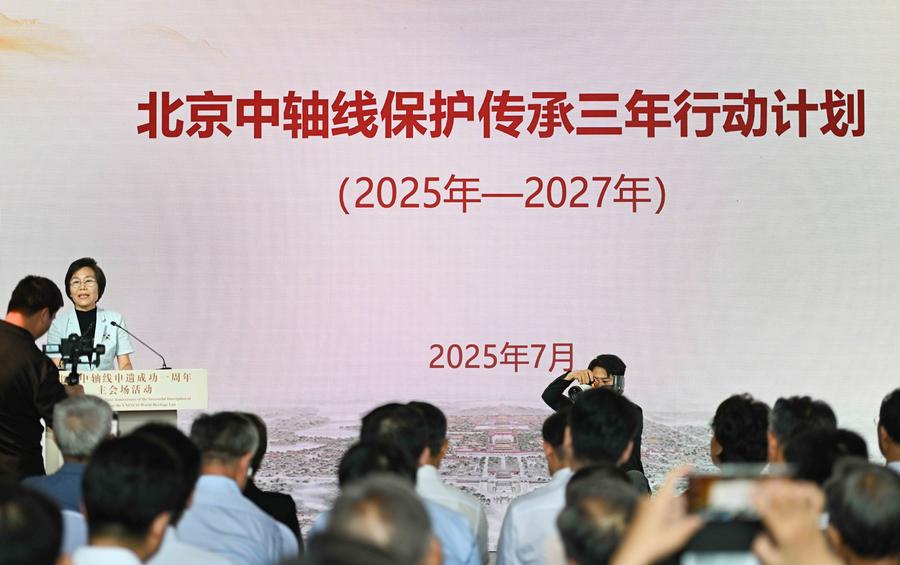 【新華社北京7月28日】中国北京市の鐘鼓楼広場で27日、北京中軸線の世界遺産登録1周年を祝うイベントが行われた。「北京中軸線保護継承3カ年行動計画(2025~27年)」のほか、シリーズ書籍「北京中軸線:中国理想の都城秩序の傑作」や特殊切手「世界文化遺産-北京中軸線」なども発表された。この1年間の総合的かつ体系的な保護、文化遺産の継承と活用、国際交流・協力など、一連の成果が示された。