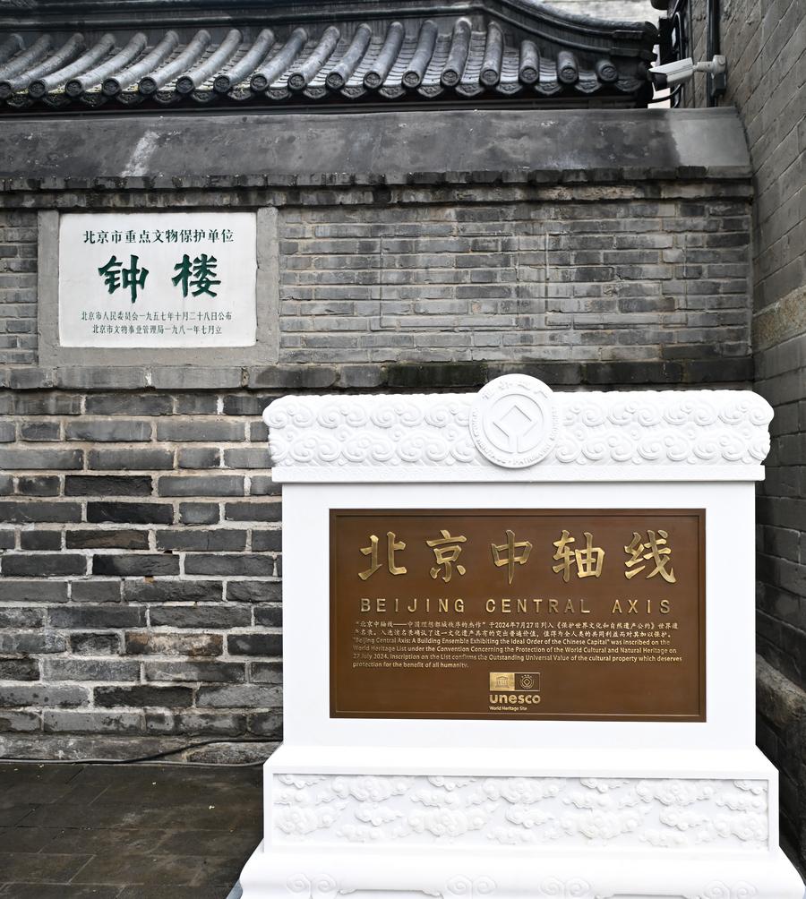 27日、北京の鐘楼前に新しく設置された記念碑。(北京=新華社記者/陳鍾昊)