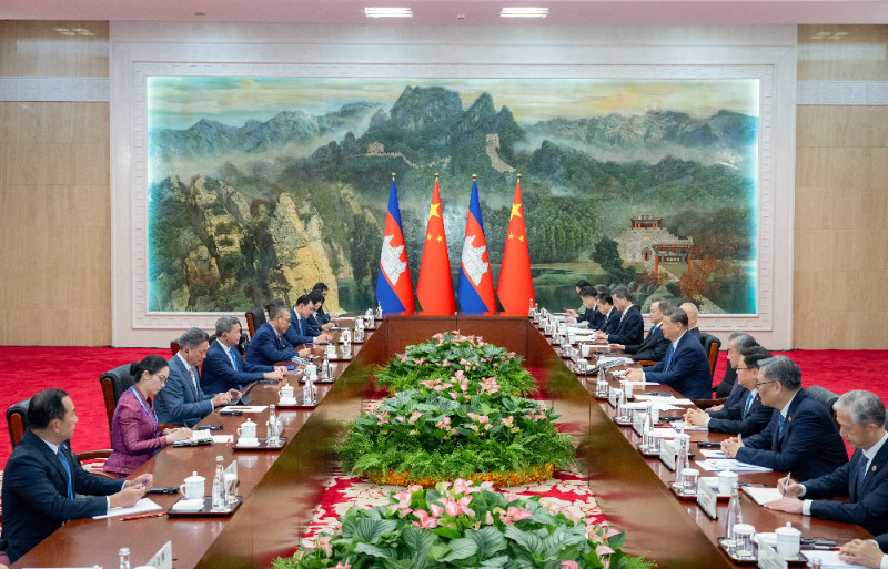 【新華社天津8月30日】中国の習近平(しゅう・きんぺい)国家主席は30日、天津迎賓館で、2025年上海協力機構(SCO)サミットに出席するため訪中したカンボジアのフン・マネット首相と会見した。
