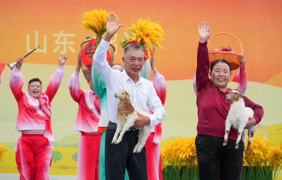 【新華社招遠9月23日】中国山東省招遠市で23日、秋の収穫を祝う「2025年中国農民豊収節」の全国主会場イベントが開かれた。「豊作を祝い、美しい暮らしを共に」をテーマに都市と農村の人々が参加。全国から集まった農民と観光客が共に豊作の喜びを分かち合った。