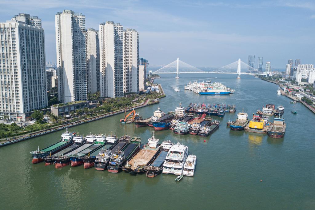 【新華社海口9月24日】中国海南省海口市では、台風18号の接近に伴い、船舶が港湾や河川の支流に順次入り、避難している。