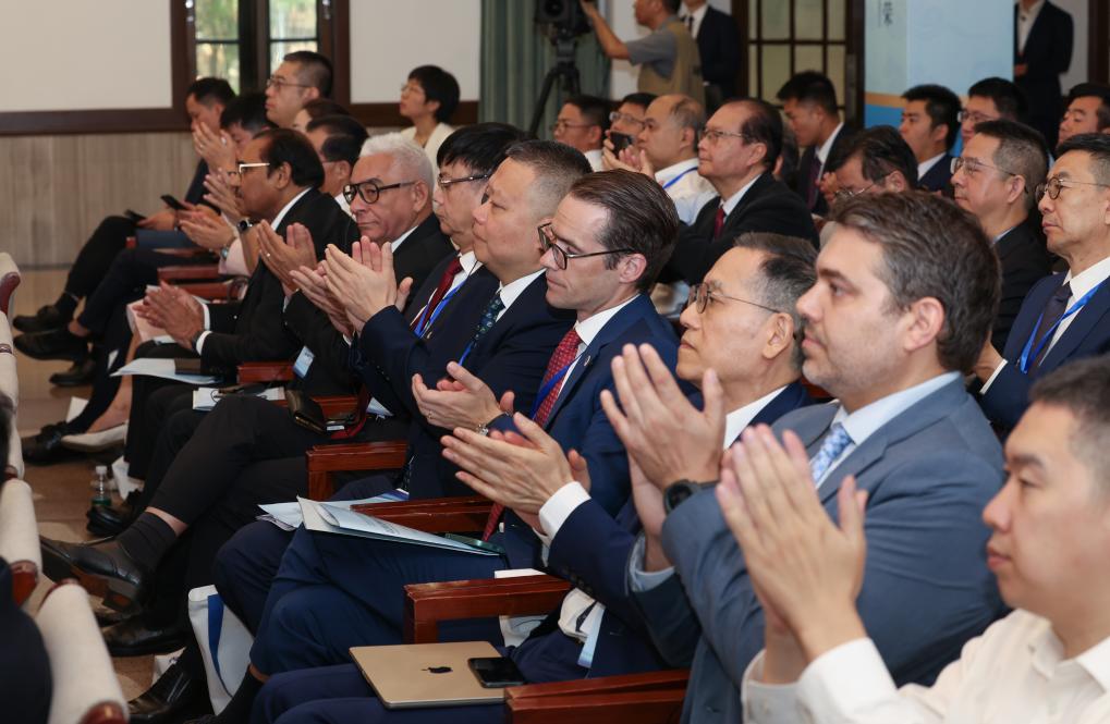 27日、シンポジウムに参加した国内外の学者。(広州=新華社記者/劉大偉)