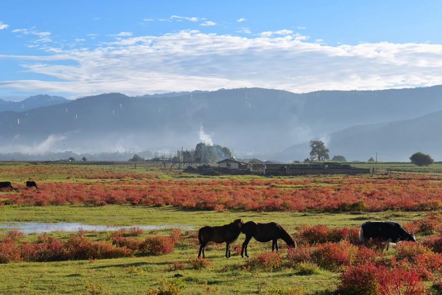 雲南省シャングリラ市小中甸鎮の秋景色。(9月13日撮影、シャングリラ=新華社配信/李建生)
