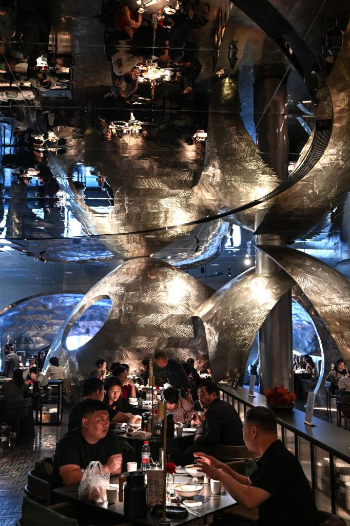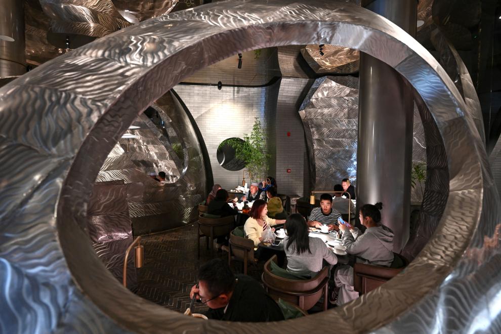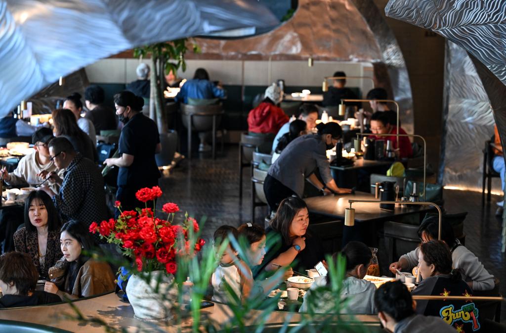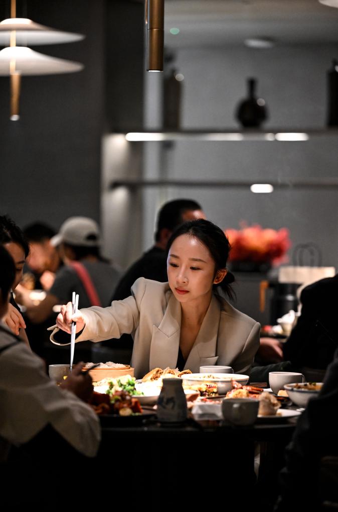 24日、呉忠市の早茶店で食事をする人たち。(呉忠=新華社記者/馮開華)