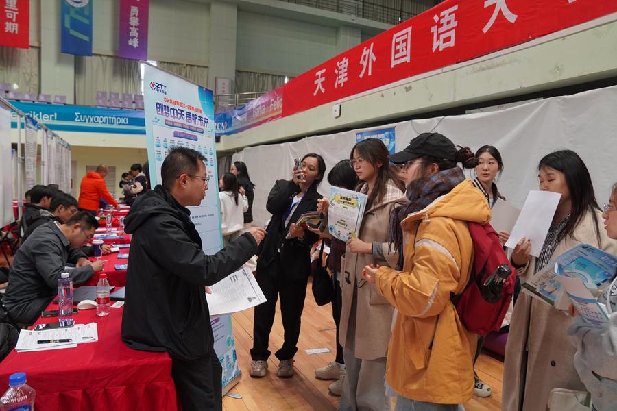 【新華社天津10月26日】中国天津市の天津外国語大学馬場道キャンパスで21日、2026年度卒業予定の女子大学生を対象とした企業説明会が開催され、約180社の優良企業が求人情報を公開した。会場では、就職指導や起業支援、関連政策の紹介、キャリアプランニングなどさまざまなプログラムも用意され、市内の大学から学生約千人が参加した。