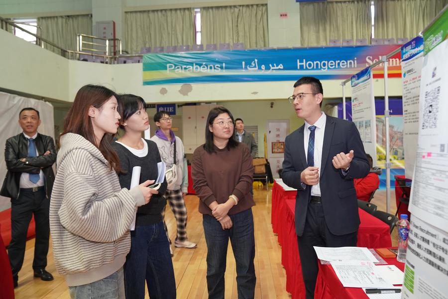 21日、天津外国語大学で開催された企業説明会。(天津=新華社配信)