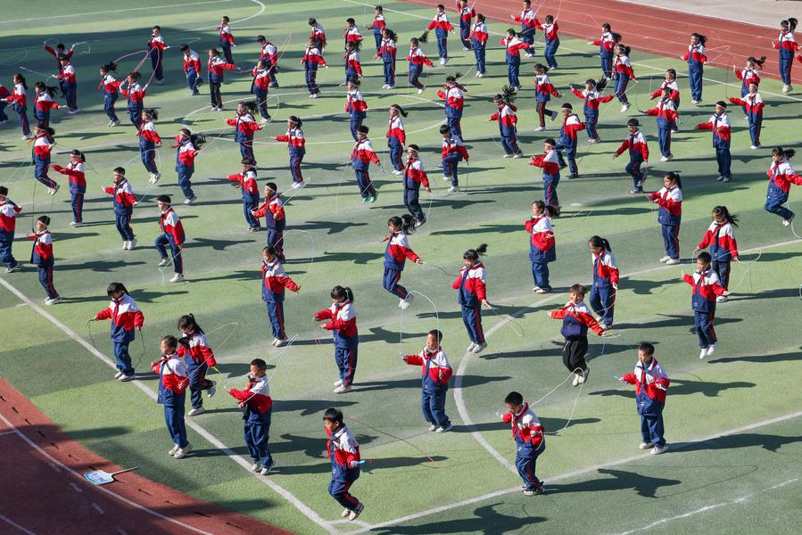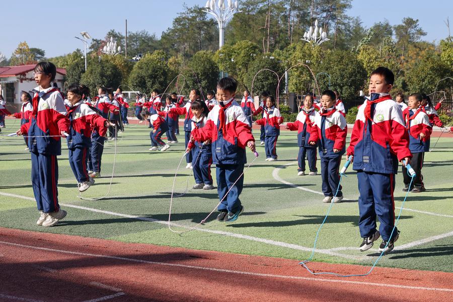【新華社武夷山11月28日】中国福建省武夷山市の新豊小学校は26日、業間休みに縄跳び体操大会を開いた。同校は縄跳びを体育の授業に取り入れており、児童らのリズム感や体の柔軟性向上に役立っているという。