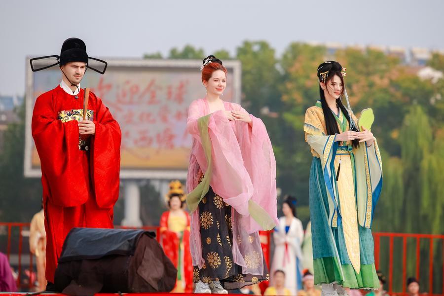 西塘漢服文化ウイーク2025でパレードに参加する外国人の漢服愛好家。(11月2日撮影、杭州=新華社配信)