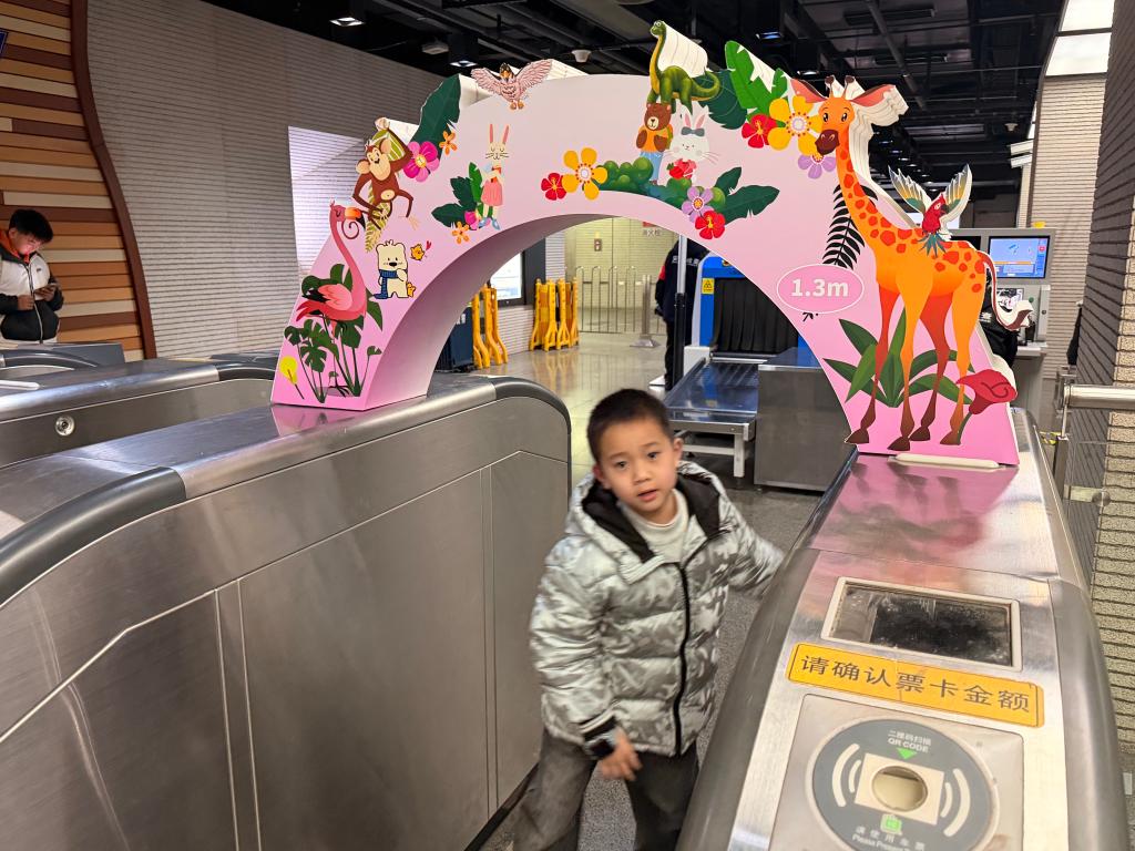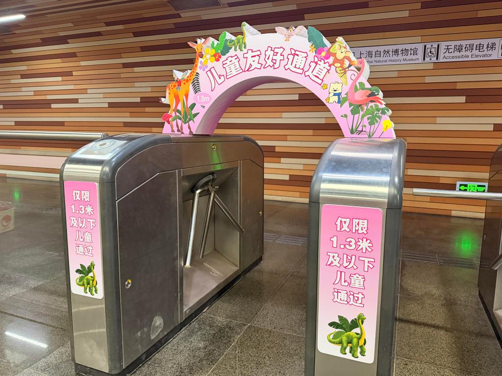 【新華社上海1月27日】中国上海市の地下鉄「自然博物館」駅は1月から、運賃が無料となる身長130センチ以下の子ども専用の通路4本を試験導入した。改札機の上部に目立つアーチ形の標識を設置、子どもは専用通路を通って安全に改札を抜けられるようになった。