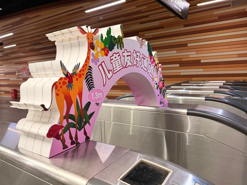 23日、上海市地下鉄の自然博物館駅に試験導入された子ども専用通路。(上海=新華社配信)