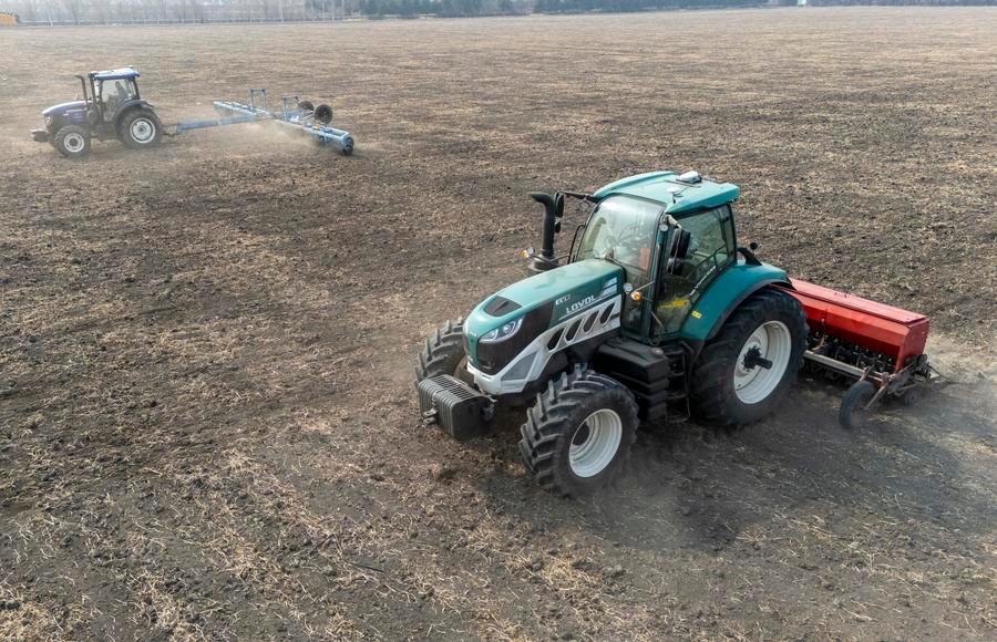 25日、閆家崗農場で行われた小麦の種まき。(ハルビン=新華社記者/王松)