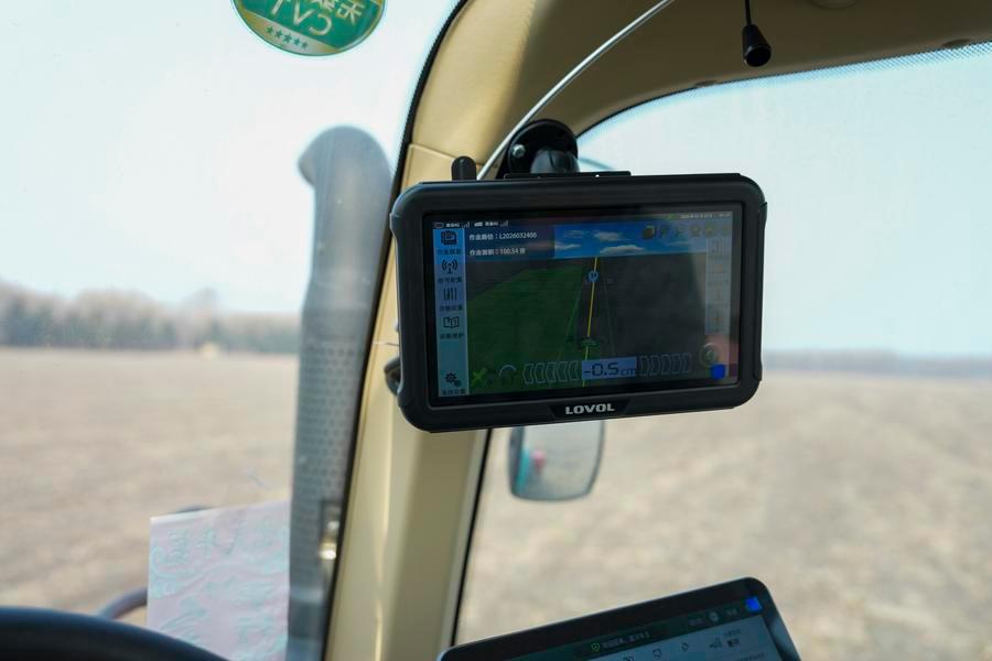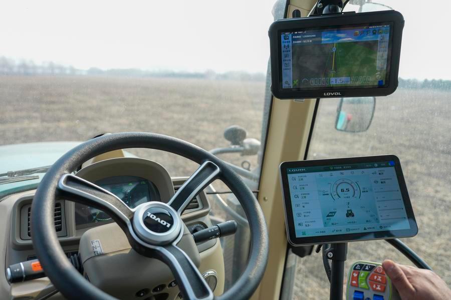 25日、閆家崗農場で、設定に従い種まきをする無人運転の農機。(ハルビン=新華社記者/王松)