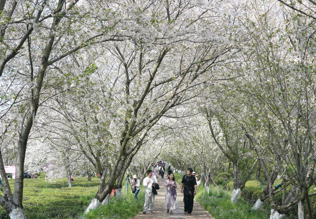 【新華社南昌4月2日】中国江西省南昌県の鳳凰溝風景区で桜が見頃を迎えた。2千ムー(約133ヘクタール)余りの「桜花谷」では、早咲きや遅咲きなど20種類以上の桜が次々と咲き、多くの観光客が花見や散策を楽しんでいる。